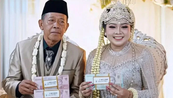 انڈونیشیا (مانیٹرنگ ڈیسک) انڈونیشیا میں ایک 74 سالہ شخص نے اپنی عمر سے تقریباً نصف صدی کم عمر خاتون سے شادی کر کے سب کو حیران کر دیا۔ اس انوکھے رشتے پر اس شخص نے کروڑوں روپے خرچ کیے۔یہ غیرمعمولی واقعہ انڈونیشیا کے صوبہ ایسٹ جاوا کے ضلع Pacitan Regency میں پیش آیا، جہاں 74 سالہ ترمان (Tarman) نے 24 سالہ شیلا اریکا (Shela Arika) سے شادی رچائی۔ میڈیا رپورٹس کے مطابق دلہن کو حقِ مہر کے طور پر 3 ارب انڈونیشین روپے (تقریباً 5 کروڑ پاکستانی روپے) ادا کیے گئے۔