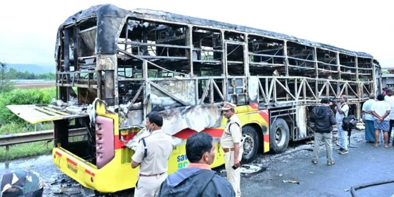 بھارتی ذرائع ابلاغ کے مطابق حادثہ اس وقت پیش آیا جب تیز رفتاری سے جانے والی بس ایک موٹر سائیکل سے ٹکرا گئی، جس کے بعد بس میں خوفناک آگ لگ گئی۔ واقعہ ریاست کے ہائی وے پر پیش آیا جہاں یہ بس حیدرآباد سے بینگلورو کے لیے روانہ تھی۔
