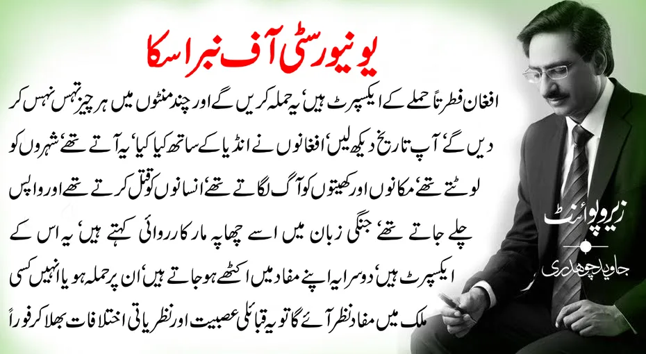 یہ مسجدوں میں گھوڑے باندھتے ہیں اور قرآن مجید کو (نعوذباللہ) بستر کے طور پر استعمال کرتے ہیں اور یہ گستاخ رسول بھی ہیں‘ امریکی سپانسرڈ مدارس میں افغانوں کے ساتھ ساتھ پنجابی بھی پڑھتے تھے یوں ان مدارس سے ایک نئی اور شدت پسند نسل نے جنم لے لیا اور سوم امریکا نے افغانوں اور پاکستانیوں دونوں کو یقین دلا دیا افغانستان ناقابل تسخیر ہے‘ یہ تاریخ کے کسی دور میں کسی قوم کے تابع نہیں رہا‘ افغان مر جاتے ہیں لیکن دوسرے کی اطاعت نہیں کرتے‘ افغانوں کو یہ بھی یقین دلا دیا گیا تم سچے مسلمان ہو اور باقی دنیا کافر ہے اور جو تمہیں نہ مانے یا تمہارا ساتھ نہ دے وہ کافر ہے اور اس کی جان لینا تم پر فرض ہے‘ یہ سلسلہ 30 سال چلا اور اس نے افغانوں اور پاکستانیوں دونوں کا ذہن بدل دیا اور یہ یونیورسٹی آف نبراسکا کا کمال تھا‘ اس دوران پاکستان نیو کلیئر پاور بن گیا اور اس نے میزائل بھی بنانا شروع کر دیے‘ میزائل سازی میں ان لوگوں کا زیادہ ہاتھ تھا جن کے آبائو اجداد افغان کمانڈرز کے ساتھ ہندوستان آئے تھے اوریہاں بس گئے تھے چناں چہ انہوں نے میزائلوں کے نام غزنوی‘ غوری‘ ابدالی اور بابر رکھ دیے‘ ان ناموں سے انڈین گھبراتے اور چڑتے تھے اور جس چیز سے انڈین کو مرچیں لگتی ہیں ہم من حیث القوم اسے اپنی زندگی کا مقصد بنا لیتے ہیں‘ ہمارا بس نہیں چلتا تھا ہم اپنی ہاکی اور کرکٹ ٹیم کو بھی اسی طرح غوری‘ غزنوی اور ابدالی کا نام دے دیتے جس طرح ہم نے چھ اور سات کے ہندسے اور جہاز کو انڈیا کی چھیڑ بنا دیا ہے بہرحال قصہ مختصر پروپیگنڈا اور جعلی سلیبسوں کا یہ نتیجہ نکلا ہم نے افغانوں کے لیے اپنے معاشرے اور معیشت دونوں کا بیڑہ غرق کر لیا اور افغانوں کو ناقابل تسخیر ہونے کا یقین دلا دیا اور آج حالات یہاں تک پہنچ چکے ہیں یہ ہم پر حملے کر رہے ہیں اور ہم انہیں حیرت سے دیکھ رہے ہیں۔