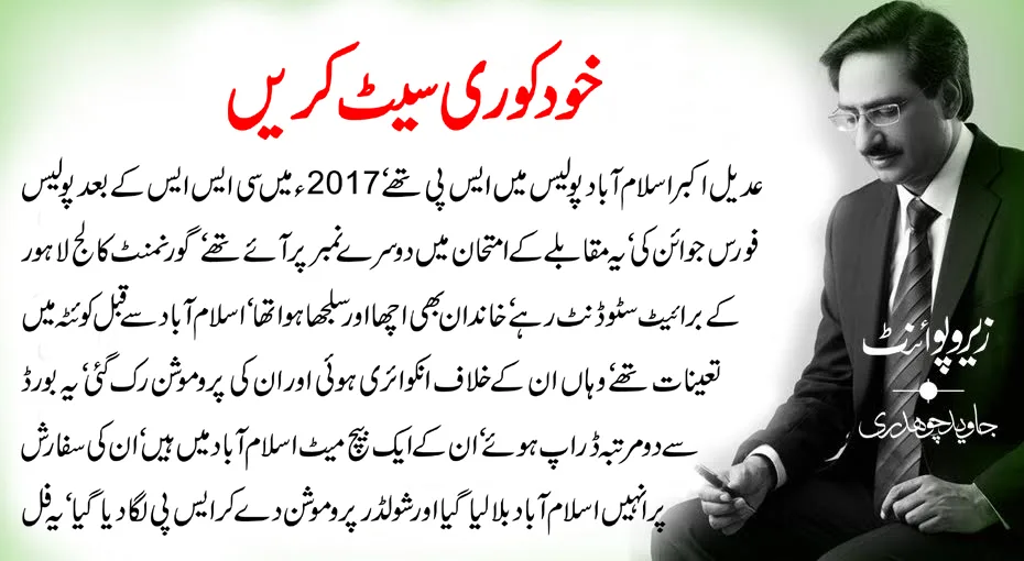 عدیل اکبر اسلام آباد پولیس میں ایس پی تھے‘ 2017ء میں سی ایس ایس کے بعد پولیس فورس جوائن کی‘ یہ مقابلے کے امتحان میں دوسرے نمبر پر آئے تھے‘ گورنمنٹ کالج لاہور کے برائیٹ سٹوڈنٹ رہے‘ خاندان بھی اچھا اور سلجھا ہوا تھا‘ اسلام آباد سے قبل کوئٹہ میں تعینات تھے‘ وہاں ان کے خلاف انکوائری ہوئی اور ان کی پروموشن رک گئی‘ یہ بورڈ سے دومرتبہ ڈراپ ہوئے‘ ان کے ایک بیچ میٹ اسلام آباد میں ہیں‘ ان کی سفارش پر انہیں اسلام آباد بلا لیا گیا اور شولڈر پروموشن دے کر ایس پی لگا دیا گیا‘ یہ فل برائیٹ سکالر شپ پر اگلے سال امریکا جا رہے تھے‘ شادی شدہ تھے اور ان کی تین سال کی بیٹی تھی‘ کولیگز اور ماتحتوں کے ساتھ بھی ان کا رویہ اچھا تھا لیکن 23 اکتوبر کی شام چار بج کر 23 منٹ پرانہوں نے اپنی سرکاری گاڑی کے اندر اپنے آپریٹر کی ایل ایم جی رائفل سے خودکشی کر لی‘