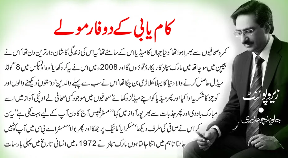 کمرہ صحافیوں سے بھرا ہوا تھا‘ دنیا جہاں کا میڈیا اس کے سامنے تھا‘ یہ اس کی زندگی کا شان دار ترین دن تھا‘ اس نے بچپن میں سوچا تھا میں مارک سپٹز کا ریکارڈ توڑوں گا اور 2008ء میں اس نے یہ کر دکھایا‘ وہ اولمپکس میں 8گولڈ میڈل حاصل کرنے والا دنیا کا پہلا کھلاڑی بن چکا تھا‘ اس نے سب سے پہلے والدین‘ دوستوں‘ دیکھنے والوں اور کوچز کا شکریہ ادا کیا اور پھر میڈیا کو اپنے میڈلز دکھائے‘ صحافیوں میں موجود کسی صحافی نے اونچی آواز میں اسے مبارک باد دی اور پھر جذبات سے بھرپور آواز میں کہا ’’مسٹر فلپس آج کا دن آپ کے لیے بہت لکی ہے‘‘ یہ سن کر اس نے صحافی کی طرف دیکھا‘ مسکرایا‘ مائیک پر جھکا اور پھر بولا ’’مسٹر اے بی سی میں آپ کونہیں جانتا تاہم میں اتنا جانتا ہوں مارک سپٹز نے 1972ء میں انسانی تاریخ میں پہلی بار سات گولڈ میڈل لیے تھے‘ 1972ء سے 2008ء تک ہزاروں تیراکوں نے یہ ریکارڈ توڑنے کی کوشش کی لیکن ناکام رہے‘ میں بچپن سے مارک سپٹز سے بڑا تیراک بننا چاہتا تھا‘