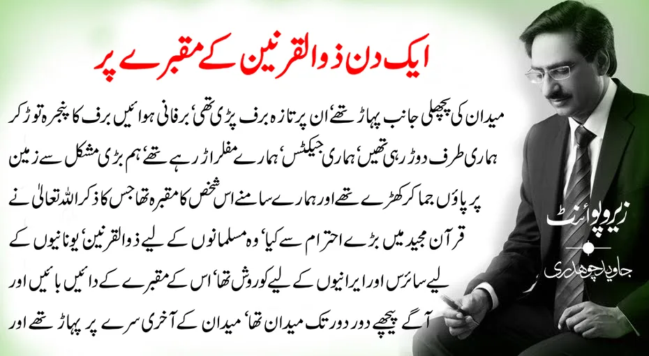میدان کی پچھلی جانب پہاڑ تھے‘ ان پر تازہ برف پڑی تھی‘ برفانی ہوائیں برف کا پنجرہ توڑ کر ہماری طرف دوڑ رہی تھیں‘ ہماری جیکٹس‘ ہمارے مفلر اڑ رہے تھے‘ ہم بڑی مشکل سے زمین پر پائوں جما کر کھڑے تھے اور ہمارے سامنے اس شخص کا مقبرہ تھا جس کا ذکر اللہ تعالیٰ نے قرآن مجید میں بڑے احترام سے کیا‘ وہ مسلمانوں کے لیے ذوالقرنین‘ یونانیوں کے لیے سائرس اور ایرانیوں کے لیے کوروش تھا‘ اس کے مقبرے کے دائیں بائیں اور آگے پیچھے دور دور تک میدان تھا‘ میدان کے آخری سرے پر پہاڑ تھے اور پہاڑوں پر تازہ تازہ برف پڑی تھی اور اس منظر میں ہم 22