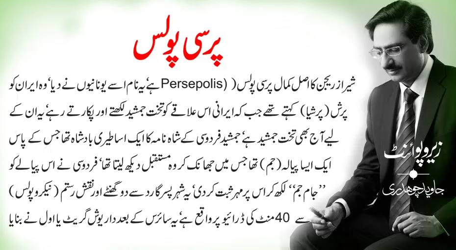داریوش نے انہیں شہر میں تبدیل کرنے کا فیصلہ کیا‘ اس کی سلطنت اس وقت تک 23 ملکوں تک پھیل چکی تھی‘ اس نے ان تمام علاقوں کے تعمیراتی ماہرین اکٹھے کیے‘ پہاڑ دکھائے اور انہیں توڑ کر ’’ری شیپ‘‘ کر کے شہر میں تبدیل کرنے کا حکم دے دیا یوں 551 قبل مسیح میں پرسی پولس کی تعمیر شروع ہو گئی‘ یہ شہر 518 قبل مسیح میں33برسوں میں مکمل ہوا اور 330 قبل مسیح تک تقریباً 188 سال ایران کا تقریباتی (سیریمونیل) دارالحکومت رہا‘ بادشاہ اس میں سرکاری تقریبات منعقد کرتے تھے‘ تاج پوشی سے لے کر سفیروں سے ملاقات‘ جنگوں کے اعلانات اور ہرسال نوروز کی تقریبات اسی چٹانی شہر میں ہوتی تھیں‘ 333 قبل مسیح میں سکندراعظم اس پر حملہ آور ہوا‘ داریوش سوم (دارا) کے ساتھ اس کی جنگ ہوئی‘ دارا کو شکست ہوئی اور سکندر اس شہر پر قابض ہو گیا‘ شہر کی خوب صورتی اور لوکیشن نے اس کا دل موہ لیا لیکن بعدازاں اس کے جرنیلوں نے پرسی پولس سے اسے دل برداشتہ کر دیا اور اس نے اسے جلانے اور گرانے کا حکم جاری کر دیا یوں یہ حیران کن شہر 31 دنوں میں ختم ہو گیا لیکن یہ تباہ ہونے کے باوجود دنیا میں اپنا نشان چھوڑ گیا‘ آج بھی دنیا بھر سے لوگ اسے دیکھنے آتے ہیں اور حیرت سے ان کا منہ کھلے کا کھلا رہ جاتا ہے‘ یہ یونیسکو کے ورلڈ ہیرٹیج میں بھی شامل ہے۔
