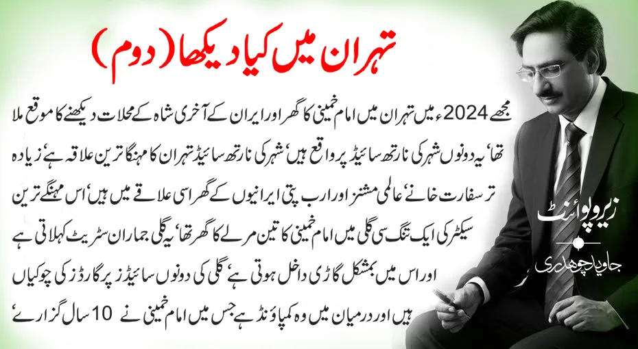 مجھے2024ء میں تہران میں امام خمینی کا گھر اور ایران کے آخری شاہ کے محلات دیکھنے کا موقع ملا تھا‘ یہ دونوں شہر کی نارتھ سائیڈ پر واقع ہیں‘ شہر کی نارتھ سائیڈ تہران کا مہنگا ترین علاقہ ہے‘ زیادہ تر سفارت خانے‘ عالمی مشنز اور ارب پتی ایرانیوں کے گھر اسی علاقے میں ہیں‘ اس مہنگے ترین سیکٹر کی ایک تنگ سی گلی میں امام خمینی کا تین مرلے کا گھر تھا‘ یہ گلی جماران سٹریٹ کہلاتی ہے اور اس میں بمشکل گاڑی داخل ہوتی ہے‘ گلی کی دونوں سائیڈز پر گارڈز کی چوکیاں ہیں اور درمیان میں وہ کمپائونڈ ہے جس میں امام خمینی نے 10 سال گزارے ‘ کمپائونڈ کے لوہے کے گیٹ کے اندر صاف پانی کی نالی بہتی ہے‘ عمارت کی پشت پر چشمہ ہے اور یہ نالی اس چشمے کے پانی کو عمارت کے اندر سے گزار کر گلی کی دوسری طرف لے جاتی ہے‘ کمپائونڈ کے اندر دائیں سائیڈ پر اونچی دیوار جب کہ بائیں جانب ہاشمی رفسنجانی اور امام خمینی کے گھر ہیں‘آپ یہ جان کر حیران ہوں گے امام خمینی کشمیری تھے‘