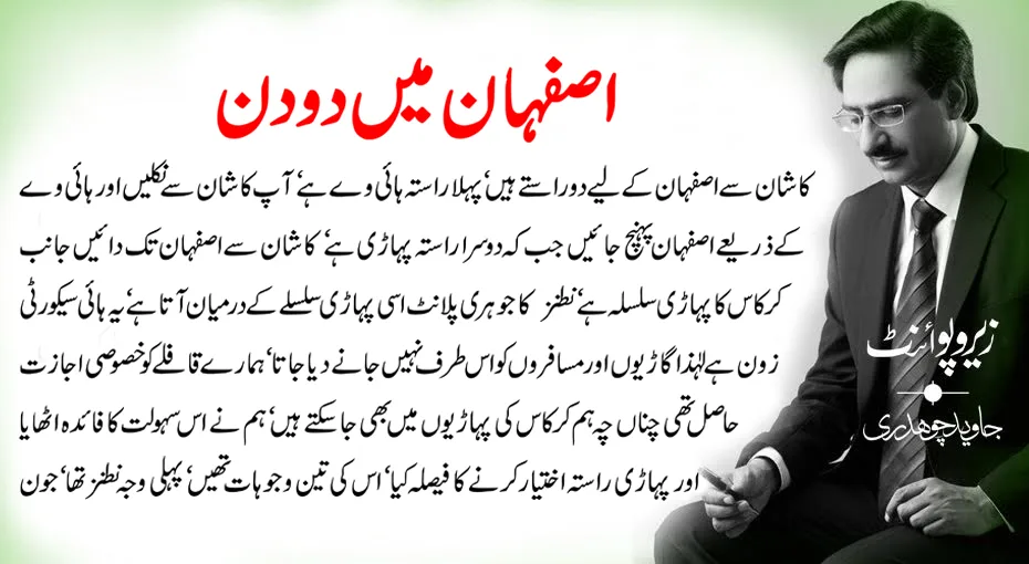 کاشان سے اصفہان کے لیے دو راستے ہیں‘ پہلا راستہ ہائی وے ہے‘ آپ کاشان سے نکلیں اور ہائی وے کے ذریعے اصفہان پہنچ جائیں جب کہ دوسرا راستہ پہاڑی ہے‘ کاشان سے اصفہان تک دائیں جانب کرکاس کا پہاڑی سلسلہ ہے‘ نطنز کا جوہری پلانٹ اسی پہاڑی سلسلے کے درمیان آتا ہے‘ یہ ہائی سیکورٹی زون ہے لہٰذا گاڑیوں اور مسافروں کو اس طرف نہیں جانے دیا جاتا‘ ہمارے قافلے کو خصوصی اجازت حاصل تھی چناں چہ ہم کرکاس کی پہاڑیوں میں بھی جا سکتے ہیں‘ ہم نے اس سہولت کا فائدہ اٹھایا اور پہاڑی راستہ اختیار کرنے کا فیصلہ کیا‘ اس کی تین وجوہات تھیں‘ پہلی وجہ نطنز تھا‘