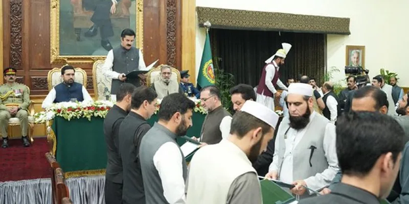 حلف اٹھانے والے وزراء میں مینا خان، فضل شکور، آفتاب عالم، فیصل ترکئی، عاقب اللہ، ارشد ایوب خان، امجد علی، خلیق الرحمان، ریاض خان اور فخر جہاں شامل ہیں۔وزیراعلیٰ کے دو مشیران مزمل اسلم اور تاج محمد ہوں گے، جبکہ شفیع اللہ جان کو معاونِ خصوصی کے طور پر کابینہ میں شامل کیا گیا ہے۔یہ تقریب صوبے میں نئی حکومت کے انتظامی ڈھانچے کے قیام کے سلسلے میں ایک اہم مرحلہ قرار دی جا رہی ہے۔