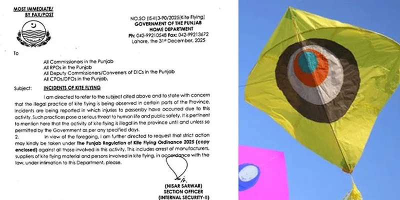 محکمہ داخلہ پنجاب کے مطابق مقررہ وقت سے قبل پتنگ سازی یا پتنگ بازی پر مکمل پابندی عائد ہے۔ غیر قانونی پتنگ بازی انسانی جانوں اور عوامی تحفظ کیلئے سنگین خطرہ ہے۔ غیر قانونی پتنگ بازی کے باعث راہگیروں کے زخمی ہونے کے واقعات تشویشناک ہیں۔ انسانی جانوں کا تحفظ حکومت پنجاب کی اولین ترجیح ہے۔ انسانی جانوں کیلئے خطرہ بننے والی پتنگ بازی کی کسی صورت اجازت نہیں دی جاسکتی۔ جشن بہاراں کے دوران ثقافتی سرگرمی کے طور پر محفوظ بسنت کی اجازت دی گئی ہے۔پتنگ بازی میں ملوث افراد کے خلاف بلا امتیاز کارروائی عمل میں لائی جائے گی۔ تمام کارروائیاں “کائٹ فلائنگ ریگولیشنز بل 2025 کے مطابق کی جائیں گی۔ حکومتی اجازت کے بغیر پتنگ سازی اور پتنگ بازی مکمل طور پر غیر قانونی ہے۔