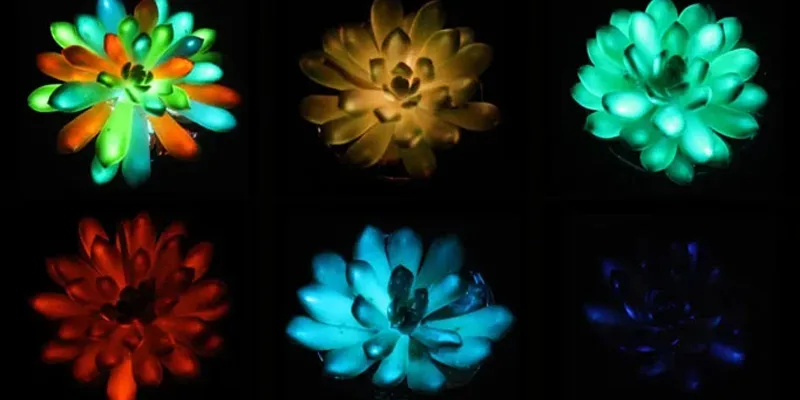 یہ کامیابی ساوتھ چائنا ایگریکلچرل یونیورسٹی کے محققین نے حاصل کی، جنہوں نے ایچویریا Echeveria میبینا Mebina نامی پودے کی پتیوں میں اسٹرونشیم ایلومینیٹ strontium aluminate منتقل کیا، جو عام طور پر گلو اِن دا ڈارک کھلونوں میں استعمال ہوتا ہے۔اس سے پہلے روشنی خارج کرنے والے پودے صرف سبز رنگ میں جگمگاتے تھے، لیکن اس نئی تکنیک کے ذریعے پودے سرخ، نیلے اور سبز تینوں رنگوں میں روشنی دینے لگے ہیں۔
