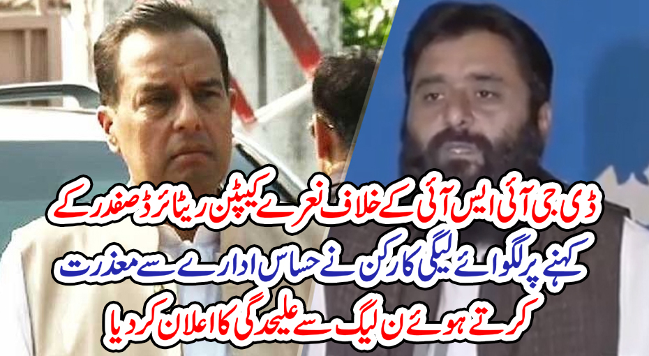 ڈی جی آئی ایس آئی کے خلاف نعرے کیپٹن ریٹائرڈ صفدر کے کہنے پر لگوائے،لیگی کارکن نے حساس ادارے سے معذرت کرتے ہوئے ن لیگ سے علیحدگی کا اعلان کر دیا