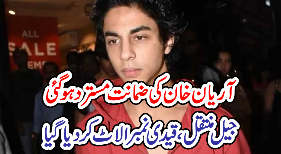 آریان خان کی ضمانت مسترد ہو گئی جیل منتقل ، قیدی نمبرالاٹ کردیا گیا
