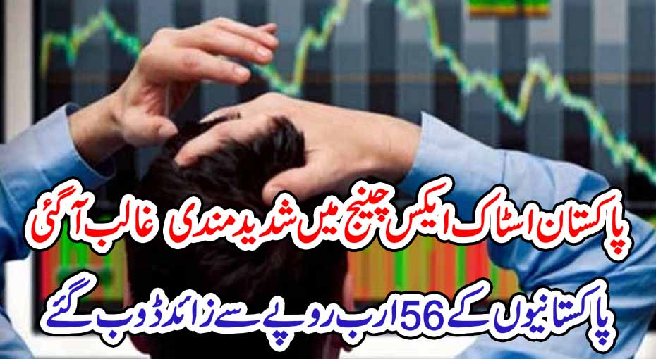 پاکستان اسٹاک ایکس چینج میں شدید مندی غالب آگئی پاکستانیوں کے 56ارب روپے سے زائد ڈوب گئے