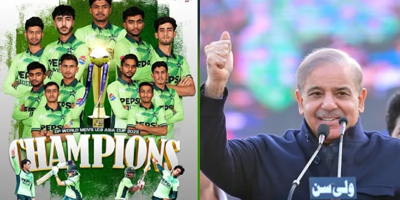 ذرائع کے مطابق شہباز شریف نے کہا کہ آپ لوگوں نے دنیا بھر میں پاکستان کا نام روشن کردیا، بھارت کو بدترین شکست پر میں آپ سب کو مبارکباد پیش کرتا ہوں، خود دیکھا ٹیم جس جوش و جذبے سے میدان میں لڑرہی تھی اس کی مثال نہیں ملتی، مجھ سمیت تمام پاکستانیوں کو آپ پر فخر ہے۔وزیر اعظم نے کھلاڑیوں سے کہا کہ امیدکرتاہوں کہ آپ کارکردگی کے تسلسل کوبرقرار رکھیں گے، آپ بہت جلد انڈر 19 ورلڈ کپ بھی پاکستان لائیں گے ، چیئرمین پی سی بی کو کہتا ہوں کہ تمام کھلاڑیوں کا بھرپور خیال رکھاجائے ، تمام کھلاڑیوں کو ہر طرح کی سہولت بہم پہنچائی جائے۔شہباز شریف نے کہا کہ آپ میں سے بہت سے کھلاڑی کل پاکستان کی قومی ٹیم کا حصہ ہوں گے اس موقع پر وزیراعظم نے سمیرمنہاس کو بہترین کارکردگی پر شاباش دی اور ان کو ہیرو قرار دیا، شہباز شریف نے محسن نقوی کو پی سی بی معاملات احسن طریقے سے چلانے پر مبارکباد دی۔