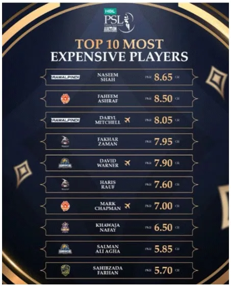 جہاں فرنچائزز نے اپنے اسکواڈ مضبوط بنانے کے لیے نمایاں کھلاڑیوں کو بھاری رقوم کے عوض منتخب کیا۔اس موقع پر نئی شامل ہونے والی ٹیم راولپنڈی نے فاسٹ بولر نسیم شاہ کو 86.5 ملین روپے میں حاصل کر کے انہیں ڈرافٹ کا سب سے مہنگا کھلاڑی بنا دیا۔ اس فہرست میں دوسرے نمبر پر آل راؤنڈر فہیم اشرف رہے جنہیں اسلام آباد یونائیٹڈ نے 85 ملین روپے میں اپنے اسکواڈ میں شامل کیا، جبکہ نیوزی لینڈ کے ڈیرل مچل بھی اتنی ہی رقم میں راولپنڈی کا حصہ بنے۔لاہور قلندرز نے فخر زمان کو 79.5 ملین روپے میں خریدا، جبکہ کراچی کنگز نے آسٹریلوی اسٹار ڈیوڈ وارنر کو 79 ملین روپے میں ٹیم میں شامل کیا۔ اسی طرح حارث رؤف دوبارہ لاہور قلندرز کے ساتھ منسلک ہو گئے جنہیں فرنچائز نے 76 ملین روپے میں حاصل کیا۔دیگر نمایاں انتخاب میں قومی ٹی ٹوئنٹی کپتان سلمان علی آغا شامل ہیں جو 58.5 ملین روپے میں کراچی کنگز سے جا ملے۔